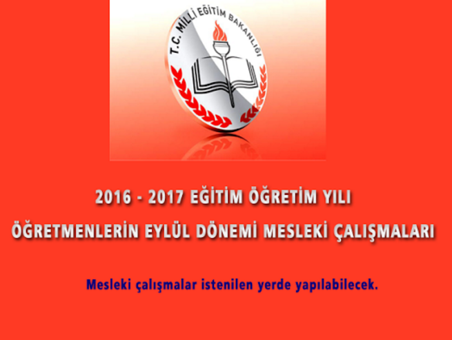 Milli Eğitim Bakanlığı Müsteşarı Doç. Dr. Yusuf TEKİN, Twitter üzerinden yaptığı açıklama ile öğretmenlerin 2016 – 2017 Eğitim Öğretim Yılı Eylül Dönemi mesleki çalışmalarını (seminer) görev yaptıkları şehirler dışında da yapabileceklerini duyurdu. Ayrıca Müsteşar Yusuf TEKİN yaptığı açıklamada mesleki çalışmaların 01-09 Eylül 2016 tarihleri arasında yürütüleceğini duyurdu.